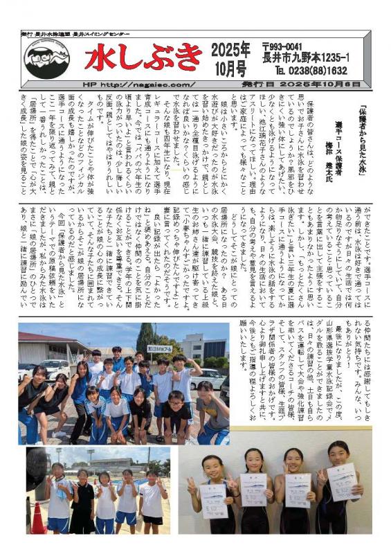 「水しぶき」とは長井スイミングセンターで行われたことを会員・保護者様へ報告、
